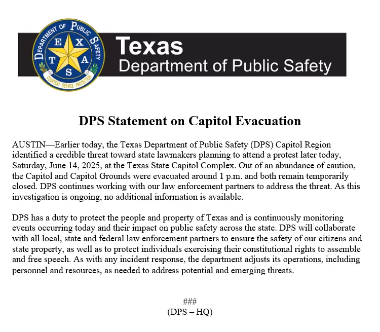 “La seguridad de nuestros legisladores y ciudadanos es prioridad. Se actuó de inmediato ante una amenaza creíble”, indicó el DPS en un comunicado oficial.