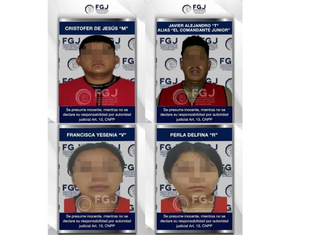 Los detenidos fueron identificados como Perla Delfina “R”, Francisca Yesenia “V”, Cristofer de Jesús “M”, y Javier Alejandro “T”, alias “El Comandante Junior”, presunto cabecilla del grupo delictivo.