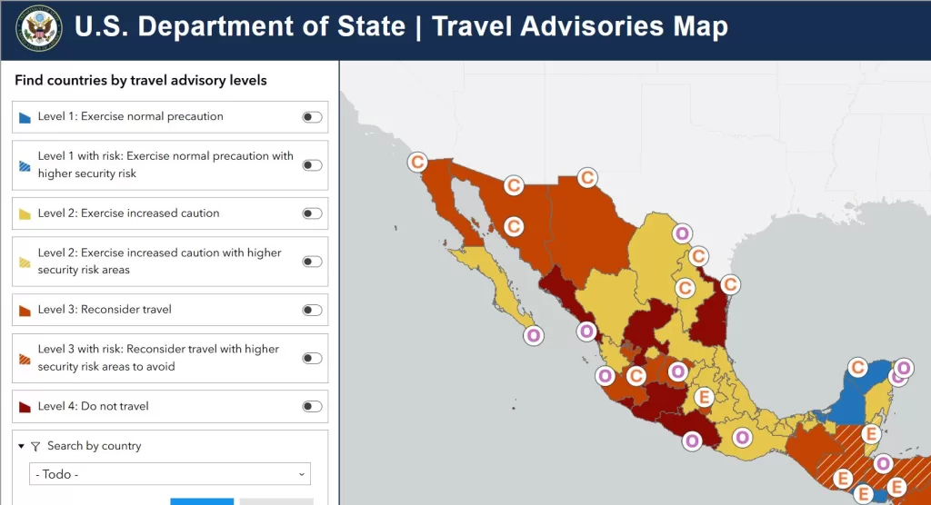 En los estados con nivel cuatro, la autoridad estadounidense argumenta que existe riesgo de violencia por grupos criminales, cárteles y pandillas, así como la posibilidad de que ciudadanos estadounidenses sean víctimas de secuestro.