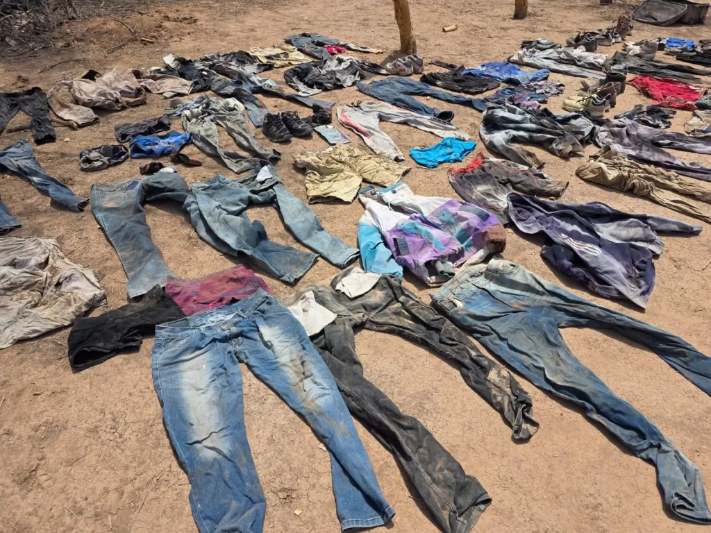 La fundadora del colectivo, Cecilia Flores, compartió en sus redes sociales imágenes que muestran cráneos humanos, huesos calcinados y una larga fila de ropa polvorienta, algunos con aparentes manchas de sangre. El hallazgo ocurrió durante una jornada de búsqueda iniciada el viernes con ayuda de palas, picos y manos, acompañadas por elementos de la policía.