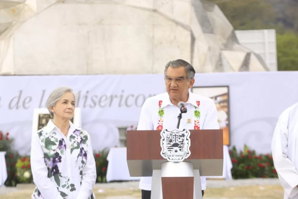 La imagen, oficialmente llamada “Virgen de la Misericordia”, fue entregada a la sociedad en una ceremonia encabezada por el gobernador Américo Villarreal Anaya, acompañado de autoridades estatales, municipales y representantes de la Iglesia católica.