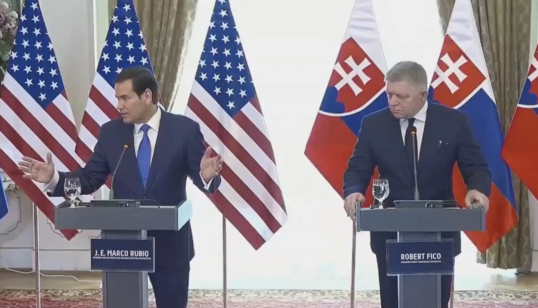 Acompañado por el primer ministro eslovaco, Robert Fico, Rubio fue tajante al evaluar el presente venezolano.