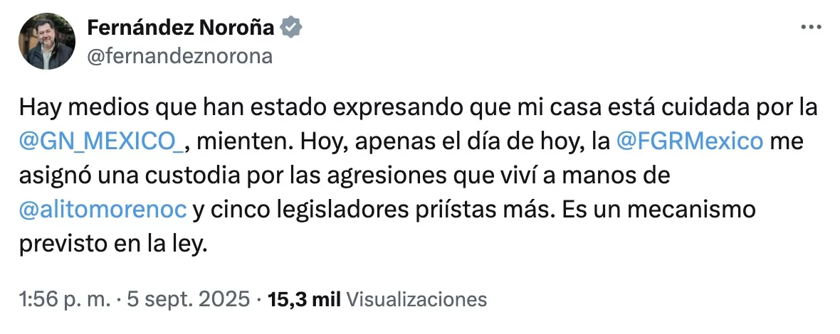 — Fernández Noroña (@fernandeznorona) September 5, 2025